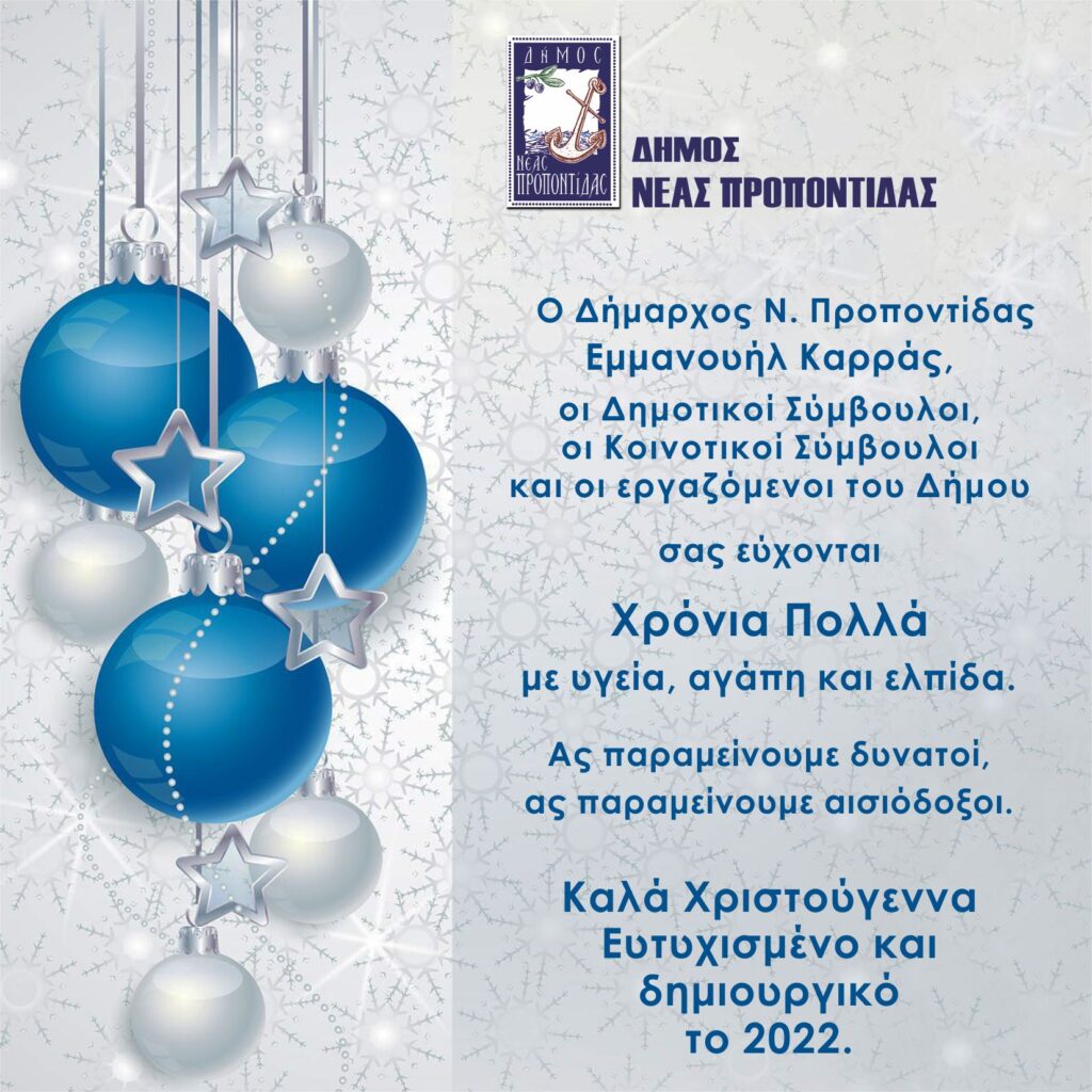 Ευχές του δημάρχου Νέας Προποντίδας Εμ. Καρρά, των δημοτικών και τοπικών συμβούλων και εργαζομένων του δήμου Νέας Προποντίδας.