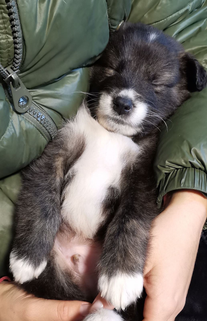Πρόσφατα, όπως η ίδια περιγράφει, «μια φίλη βρήκε σε χωματερή στο Λιτόχωρο, μέσα σε μία σακούλα σκουπιδιών, πέντε κουταβάκια μίας ημέρας, ήταν με κλειστά ματάκια, και μόλις τα είχε πετάξει κάποιος. Της είπα αμέσως να τα φέρει σε εμένα και ξεκίνησε ο αγώνας. Κάθε δύο ώρες τα ταΐζουμε και έχουμε πάρει τον ρόλο της μητέρας τους. Με βαμβάκι χαϊδεύουμε την κοιλίτσα τους όπως θα έκανε η μανούλα τους για να τα βοηθήσει», λέει και με τεράστια χαρά προσθέτει: «αισθάνομαι υπέροχα καθώς ένα από αυτά, από τα σκουπίδια, που ήταν καταδικασμένο να πεθάνει, θα το υιοθετήσει ένα αγόρι από την Αθήνα, που θα το έχει σπίτι του, θα κοιμάται στο κρεβάτι του και θα είναι στους καναπέδες του. Για μένα, αυτό δίνει νόημα στη ζωή μου, μού δίνει απίστευτη χαρά, αισθάνομαι ότι εγώ παίρνω, δεν προσφέρω, αλλά εισπράττω».