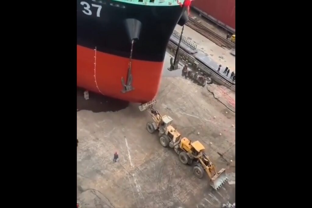 Έχουμε δει αρκετούς τρόπους καθέλκυσης ενός πλοίου από τα ναυπηγεία ανά τον κόσμο, και ήρθε η ώρα να δούμε και μία με την βοήθεια μπουλντόζας.