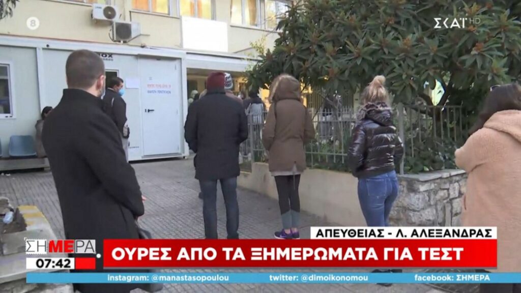 Υπενθυμίζεται ότι οι μεγάλες ουρές έξω από διαγνωστικά κέντρα και σημεία που βρίσκονται κλιμάκια του ΕΟΔΥ για την διενέργεια rapid test παρατηρούνται εδώ και μέρες, και ειδικά μετά το Χριστουγεννιάτικο ρεβεγιόν.