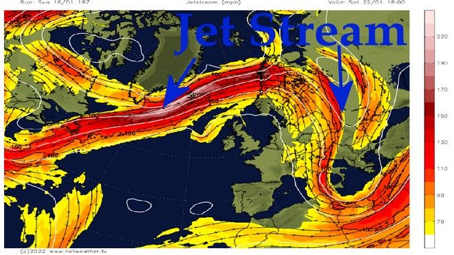 Όπως έχουμε σημειώσει πολλές φορές ο αεροχείμαρρος είναι αυτός που καθορίζει την κίνηση των αερίων μαζών και την συνοπτική κυκλοφορία της ατμόσφαιρας. Ο αεροχείμαρρος καθώς δεν μπορεί να περάσει τον αντικυκλώνα που έχει αναπτυχθεί στη ΒΔ Ευρώπη, ακολουθεί ανατολικότερη πορεία και περίπου από το ύψος της Πολωνίας Δυτικής Ρωσίας στρέφεται νοτιότερα και μεταφέρει ψυχρές αέριες μάζες.