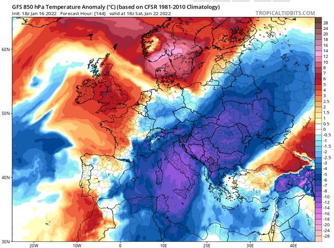 Όσο διατηρείται ο αντικυκλώνας στη ΒΔ Ευρώπη, θα εξακολουθήσουν από τα ανατολικά κράσπεδά του να κατέρχονται περιοδικά ψυχρές μάζες προς την περιοχή μας. Κάπως έτσι θα κυλήσει ο καιρός το επόμενο δεκαήμερο @News247grhttps://t.co/vFy2j6hF0a pic.twitter.com/5fBMXO6wgA— KolydasΤ (@KolydasT) January 14, 2022
