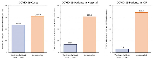 Η πραγματική είδηση είναι ότι οι εμβολιασμένοι έχουν 5 και 11 φορές αντίστοιχα μικρότερη πιθανότητα να νοσηλευθούν σε απλό θάλαμο νοσηλείας ή σε μονάδα εντατικής θεραπείας σε σχέση με τους ανεμβολίαστους».