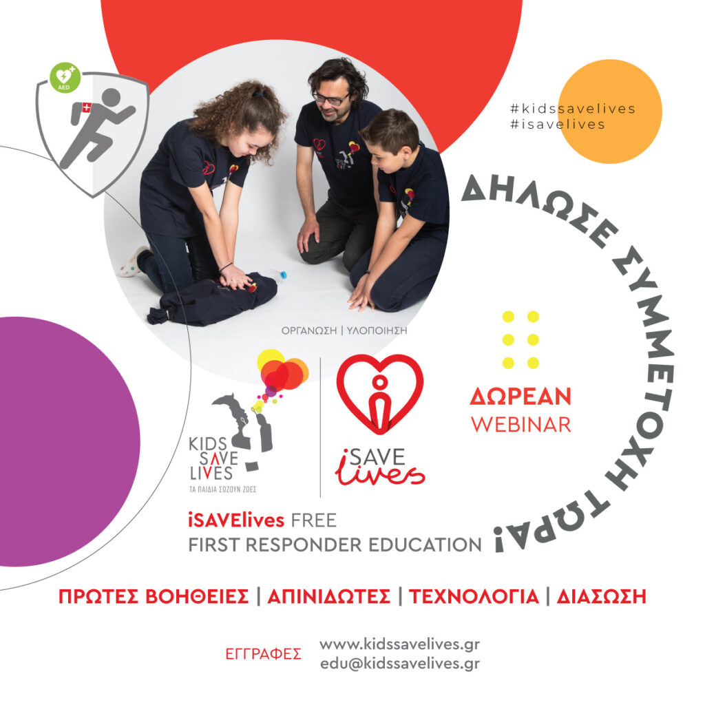 Οι ενδιαφερόμενοι μπορούν να δηλώσουν συμμετοχή στον σύνδεσμο https://kidssavelives.gr/ekpaideusi/, στην ενότητα iSAVElives FREE: First REsponder Education.
