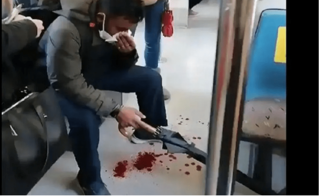 Ο μετανάστης φαίνεται στο βίντεο να κάθεται αιμόφυρτος μέσα σε βαγόνι του ΗΣΑΠ και τους συνεπιβάτες να καταγγέλλουν ρατσιστική επίθεση από έναν άλλο επιβάτη, με μια γυναίκα να λέει μάλιστα «χωρίς λόγο… Αυτός ο τύπος εδώ… Γιατί τον πείραξε πώς κοιτάζει».