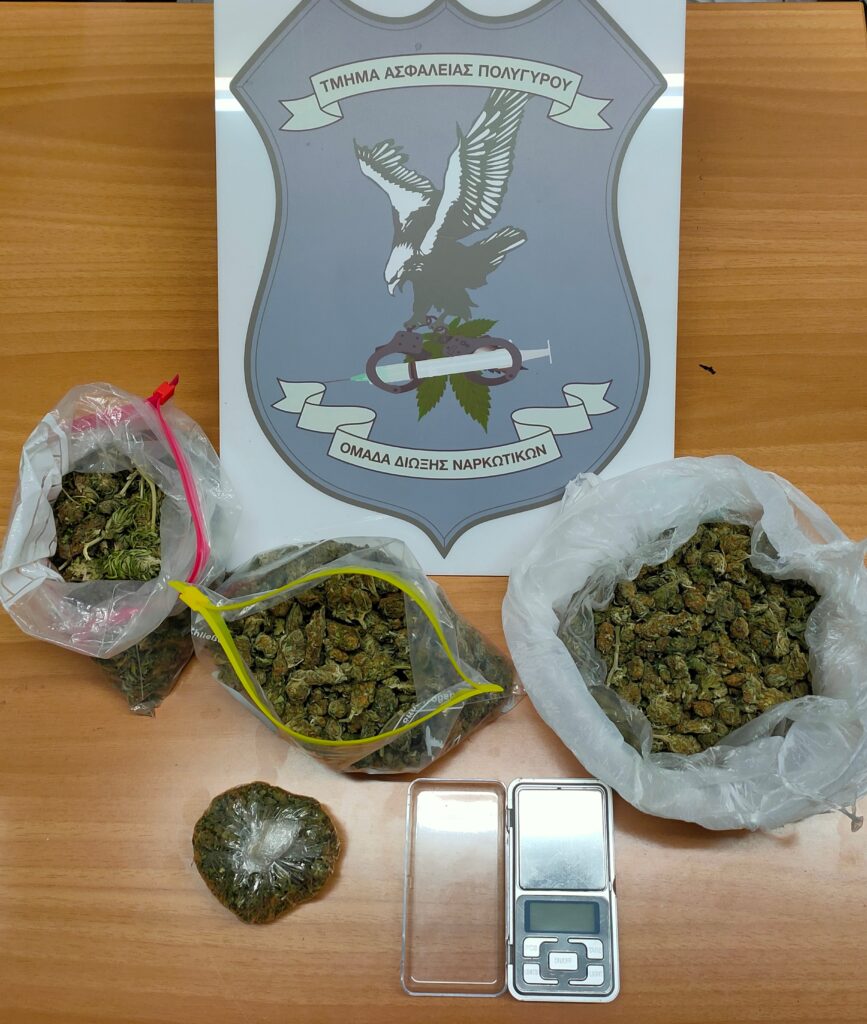 Συνελήφθη χθες (26 Ιανουαρίου 2022) το απόγευμα σε αγροτική περιοχή της Χαλκιδικής, από αστυνομικούς του Τμήματος Ασφάλειας Πολυγύρου, ένας άνδρας, καθώς διαπιστώθηκε να έχει κρύψει μέσα σε μη λειτουργικό υδραγωγείο ποσότητα κάνναβης βάρους 350 γραμμαρίων και 1 ηλεκτρονική ζυγαριά ακριβείας, τα οποία και κατασχέθηκαν, όπως και ένα κινητό τηλέφωνο που βρέθηκε στην κατοχή του.