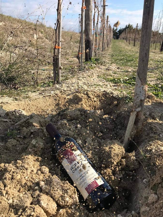 Πρόκειται για μια ιδέα που είχαν οι υπεύθυνοι της οινοποιίας στη Χαλκιδική, «θάβοντας» μπουκάλια κρασιού στο κτήμα για υπεδάφια παλαίωση.