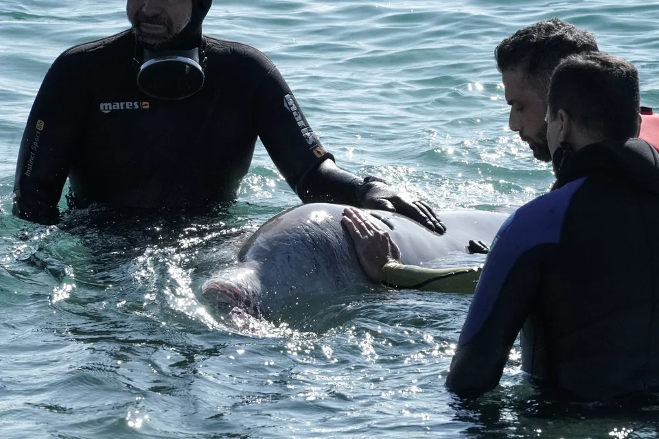 Πολύωρες και συγκινητικές προσπάθειες καταβάλλουν οι διασώστες για να κρατήσουν στη ζωή το είδος φάλαινας που ξεβράστηκε στις ακτές του Αλίμου.