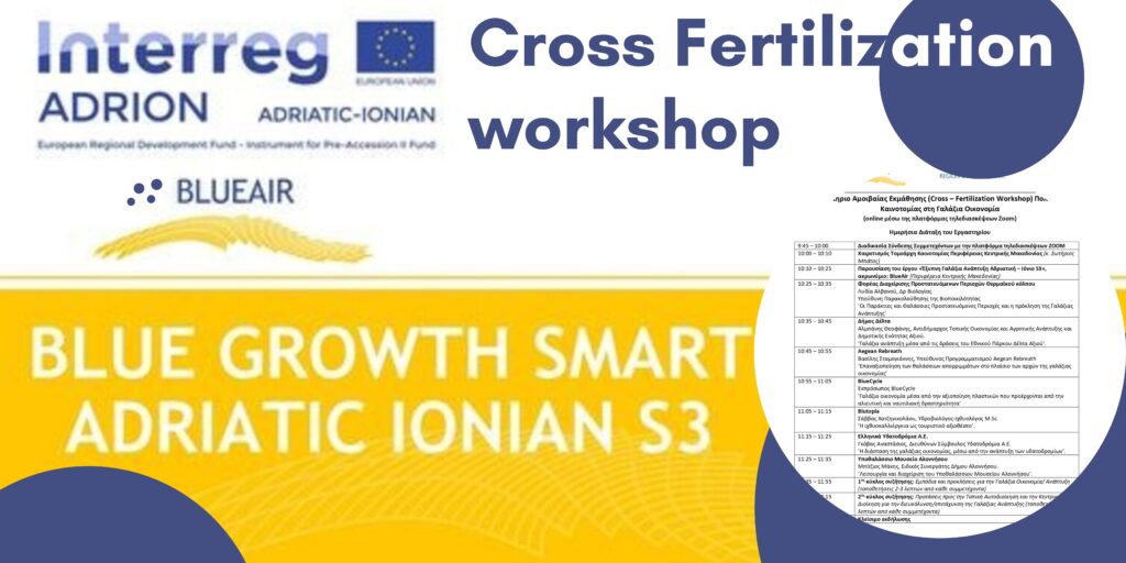 Το ευρωπαϊκό έργο BLUEAIR, το οποίο συγχρηματοδοτείται από το Ευρωπαϊκό Πρόγραμμα Εδαφικής Συνεργασίας INTERREG ADRION 2014-2020, επικεντρώνεται στη δημιουργία μιας μακροπεριοχής όσον αφορά στη Στρατηγική Έξυπνης Εξειδίκευσης S3 με γνώμονα τη Γαλάζια Οικονομία και αποσκοπεί στη δημιουργία μιας κοινότητας, μέσω της βελτίωσης των ικανοτήτων/δεξιοτήτων των θεσμικών φορέων στην περιοχή του Ιονίου-Αδριατικής. Στο πλαίσιο του εν λόγω έργου, θα ακολουθήσουν πολλές ακόμη δράσεις, όπως είναι τα εργαστήρια δικτύωσης, τα οποία θα στοχεύουν να φέρουν σε επαφή φορείς που αντιμετωπίζουν προκλήσεις στον τομέα της Γαλάζιας Οικονομίας με φορείς του δημόσιου και ιδιωτικού τομέα που είναι σε θέση να προσφέρουν λύσεις στις συγκεκριμένες ανάγκες/προκλήσεις.