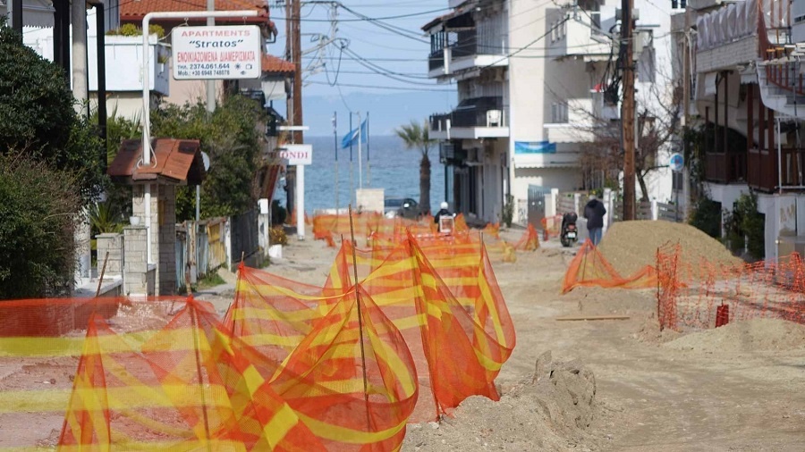 Σε εξέλιξη βρίσκονται τα έργα εξωραϊσμού κεντρικών οδών του Πευκοχωρίου στον Δήμο Κασσάνδρας, στη Χαλκιδική.
