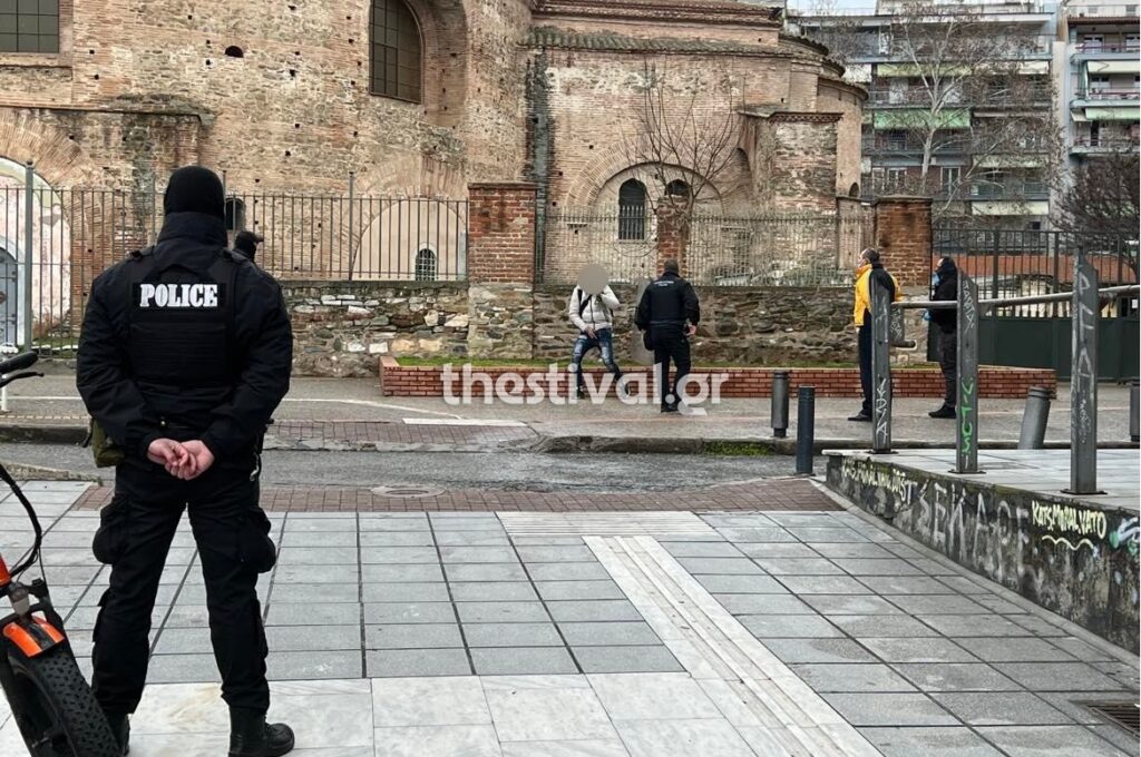 Μετά το ανθρωποκυνηγητό στα στενά, ο άνδρας έφτασε στην Ροτόντα, όπου και απειλούσε να αυτοτραυματιστεί.