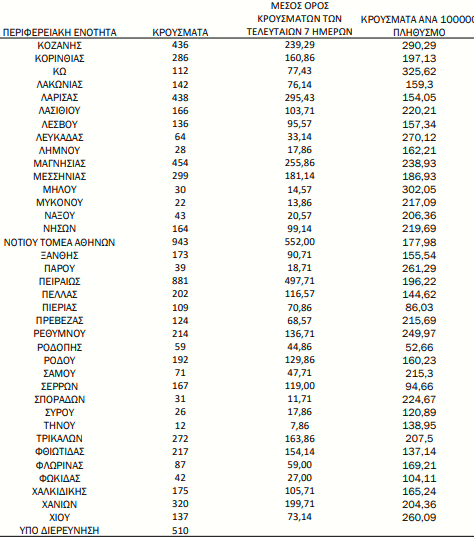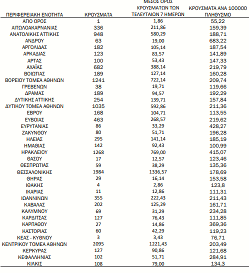 Αναλυτικότερα τα κρούσματα στις περιφερειακές ενότητες που ανήκουν στην Αττική: