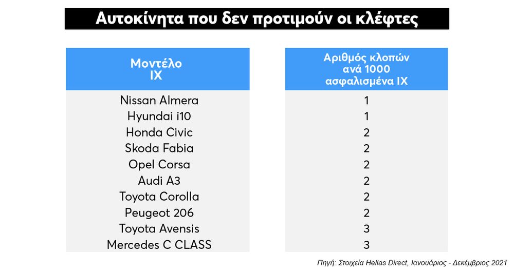 Δηλαδή, ωραίο είναι να βρίσκεις το αυτοκίνητό σου σε λίστες με τα καλύτερα/ασφαλέστερα/πιο οικονομικά. Αλλά αν είναι να το βρεις σε λίστα που αφορά κλοπές, ας είναι με αυτά που μπαίνουν στο στόχαστρο σπανιότερα. Βασικά ποτέ.