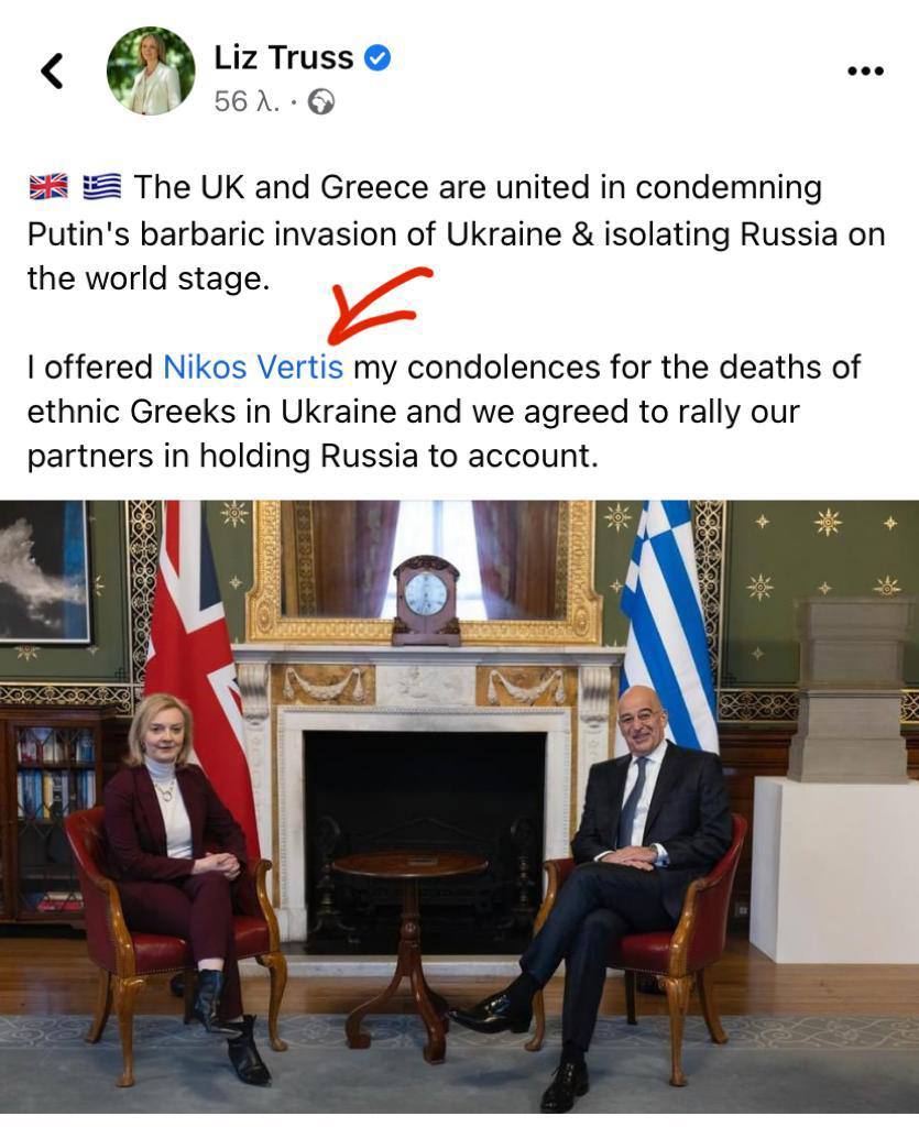 I offered @NikosDendias my condolences for the deaths of ethnic Greeks in Ukraine and we agreed to rally our partners in holding Russia to account. pic.twitter.com/HJXn9gSbPn
