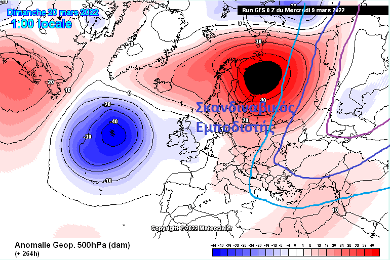 Παρότι δεν συνηθίζω να χρησιμοποιώ δημοσιογραφικές εκφράσεις, εντούτοις δεν μπορώ να βρώ κάποια καταλληλότερη έκφραση ώστε να αποτυπώσω την προοπτική που δείχνει να ξεδιπλώνεται κατά την διάρκεια του δευτέρου μισού του Μάρτη. Μετά το εξαιρετικά κρύο του πρώτο μισό, φαίνεται πως η συνέχεια, κάθε άλλο παρά ανοιξιάτικη φαίνεται. Ο λόγος, για την εξαιρετικά εντυπωσιακή εικόνα που δίνει το σύνολο των μοντέλων, τα οποία θέλουν μια τελείως εκτός εποχής, ισχυρότατη ανάπτυξη εμποδιστή αντικυκλώνα στην βόρεια Ευρώπη. Στην ουσία, πρόκειται για τον ίδιο αντικυκλώνα στον οποίο οφείλουμε τις ημέρες κρύου που τώρα διανύουμε, και αφού αυτός καταρρεύσει πρόσκαιρα ( χαρίζοντας μερικές ημέρες καλοκαιρίας από Κυριακή και μετά), ξαναναδιοργανώνεται. Αναδιοργάνωση η οποία θα τον επαναφέρει στην Σκανδιναβία-βόρεια Ευρώπη, ανοίγοντας εκ νέου τις πύλες του ψύχους, για την ανατολική Ευρώπη, και κατά πάσα πιθανότητα και για την χώρα μας, ξανά.