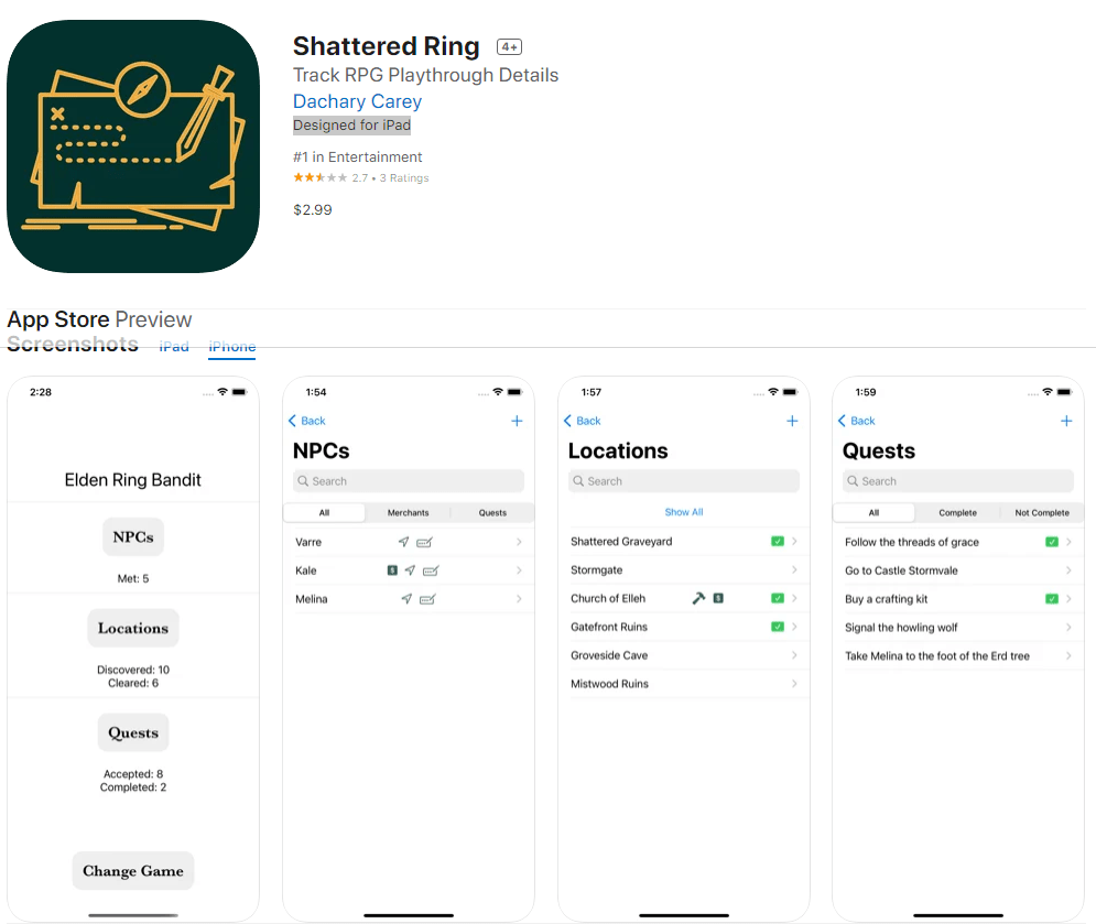 Φυσικά, το Elden Ring δεν έχει κάποιο ενσωματωμένο quest tracker, όπως συμβαίνει με την πλειοψηφία των open world παιχνιδιών, αφού αντιθέτως η FromSoftware αποφάσισε να προσφέρει μια εντελώς διαφορετική εμπειρία. Το Shattered Ring, λοιπόν, είναι μια αρκετά χρήσιμη εφαρμογή για τους πιο οργανωτικούς παίκτες που θέλουν να κρατούν ψηφιακές σημειώσεις για όλα όσα κάνουν στο παιχνίδι από την ευκολία του smartphone τους.