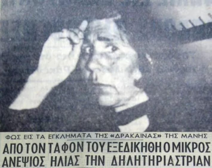 Ο Τύπος της εποχής την αποκαλούσε «Δράκαινα της Μάνης», ενώ ο εισαγγελέας έκανε λόγο για μια «ύαινα της κόλασης», που με «δέος είχα προετοιμαστεί να αντικρίσω».
