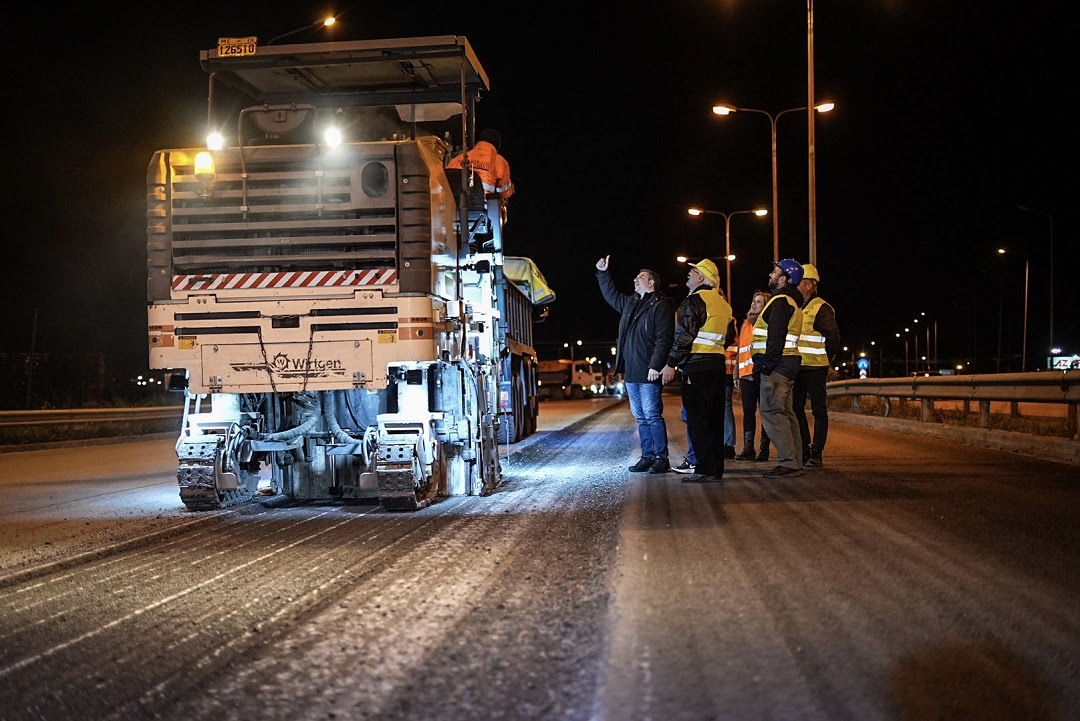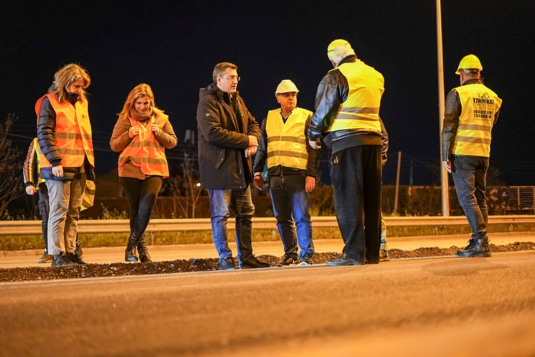 Αυτοψία στα έργα ασφαλτόστρωσης της περιφερειακής οδού Θεσσαλονίκης, που υλοποιεί κατά τις νυχτερινές ώρες η Περιφέρεια Κεντρικής Μακεδονίας πραγματοποίησε ο Περιφερειάρχης Απόστολος Τζιτζικώστας.