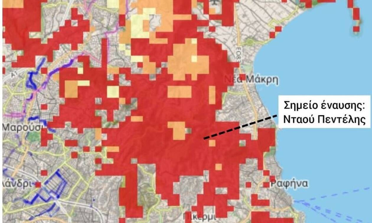 «Το σημείο έναυσης της πυρκαγιάς που εξελίσσεται στην Πεντέλη εντοπίζεται σε μια από τις περιοχές που είχαν επισημανθεί ως πολύ υψηλής επικινδυνότητας σύμφωνα με το μοντέλο ημερήσιας πρόβλεψης πυρκαγιάς της Επιχειρησιακής μονάδας ?????? του ΙΑΑΔΕΤ/ΕΑΑ που εκδόθηκε στις 18 Ιουλίου 2022 (16:00)», αναφέρει σε ανακοίνωσή του το Εθνικό Αστεροσκοπείο Αθηνών.