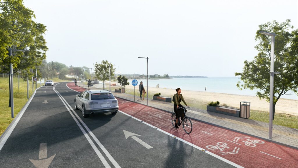 3. Ενοποίηση του παραλιακού μετώπου, από τον οικισμό «Μουριές» Διονυσίου έως τον οικισμό Ν. Φλογητών (περιοχή γηπέδου ποδοσφαίρου) με πεζοδρόμηση, ποδηλατόδρομο, ασφαλτοστρώσεις, ηλεκτροφωτισμό, δεντροφυτεύσεις, παγκάκια κ.α.