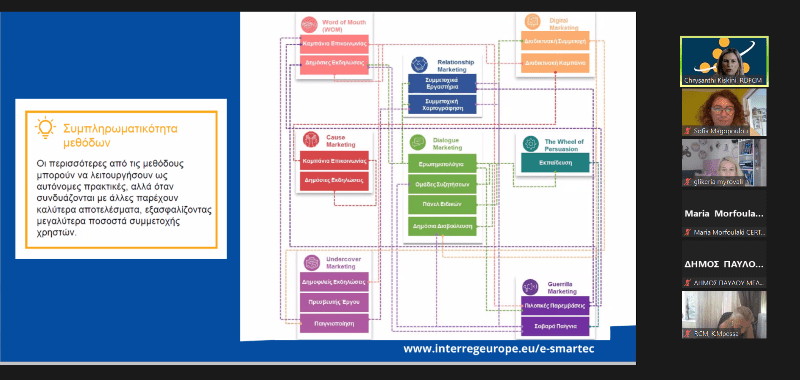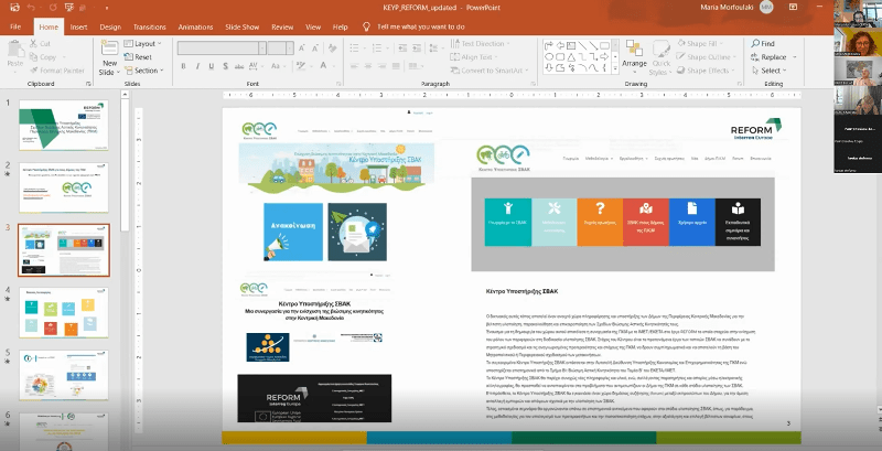 Κατά τη διάρκεια της συνάντησης παρουσιάστηκαν οι καλές πρακτικές που αναδείχθηκαν από τους εταίρους του έργου REFORM, ενώ η Δρ. Κωνσταντία Μπέσσα εκ μέρους της Περιφέρειας Κεντρικής Μακεδονίας και η Δρ. Μορφουλάκη εκ μέρους του επικεφαλής εταίρου του έργου παρουσίασαν το Παρατηρητήριο και το Κέντρο Υποστήριξης των Σχεδίων Βιώσιμης Αστικής Κινητικότητας της Περιφέρειας Κεντρικής Μακεδονίας. Επίσης έγινε παρουσίαση από την Χρυσάνθη Κισκίνη εκ μέρους του Περιφερειακού Ταμείου Ανάπτυξης Κεντρικής Μακεδονίας των καλών πρακτικών και των εργαλείων του έργου «e-smartec», καθώς και ανάλυση της χρήσης εργαλείων συμμετοχικού σχεδιασμού για την βελτιστοποίηση εγκεκριμένων έργων της Περιφέρειας Κεντρικής Μακεδονίας. Ακολούθησε διαδραστική συζήτηση με τους συμμετέχοντες, κατά την οποία αναδείχθηκε η σημασία του συμμετοχικού σχεδιασμού στην υλοποίηση έργων αστικής κινητικότητας από τους φορείς.