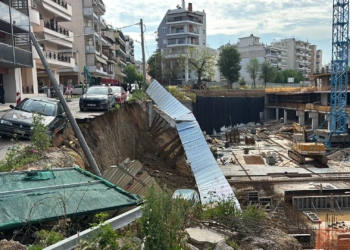 Υποχώρησε τοιχίο στους πρώην στάβλους Παπάφη – Η στιγμή που ΙΧ πέφτει στο κενό