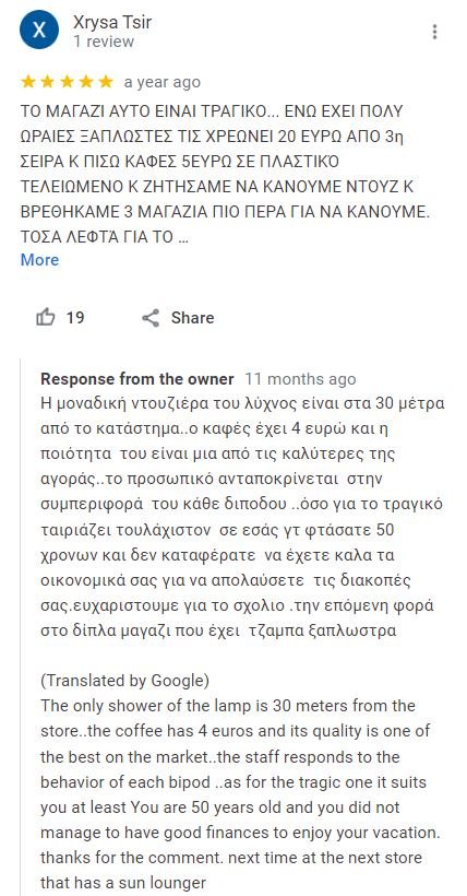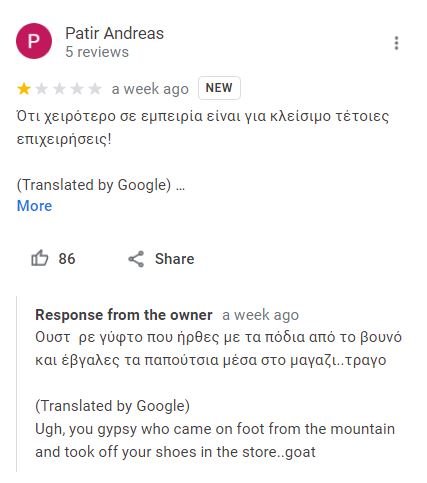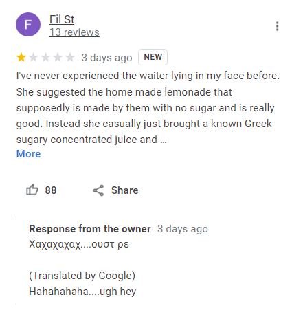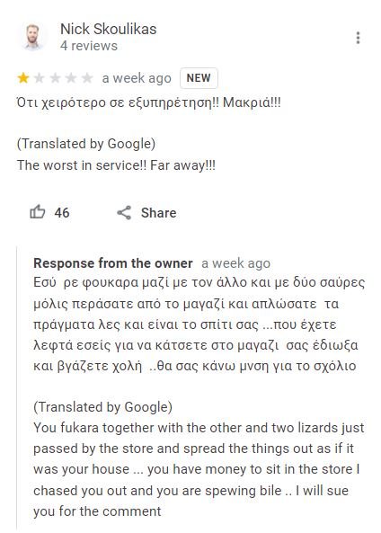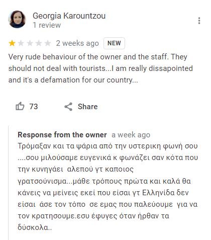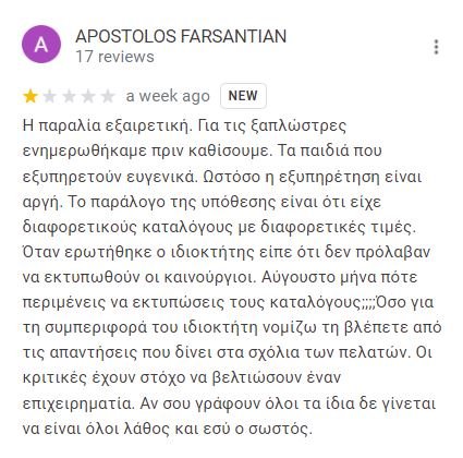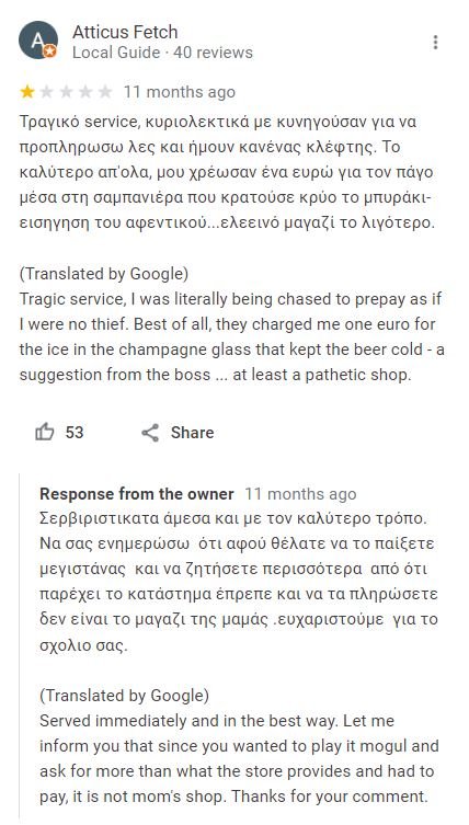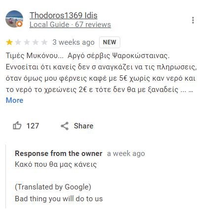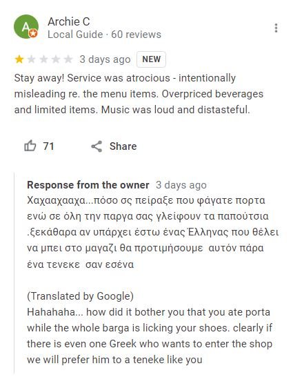 Τι ακριβώς κάνει; «Ταπώνει» όποιον πελάτη αφήνει αρνητικό σχόλιο για το μαγαζί του στο Google Maps. Ζούμε άλλωστε στην εποχή των online κριτικών, και έτσι ο καθένας μπορεί πολύ εύκολα να βαθμολογήσει και να σχολιάσει θετικά ή αρνητικά ένα μαγαζί.
