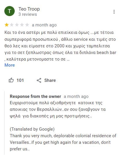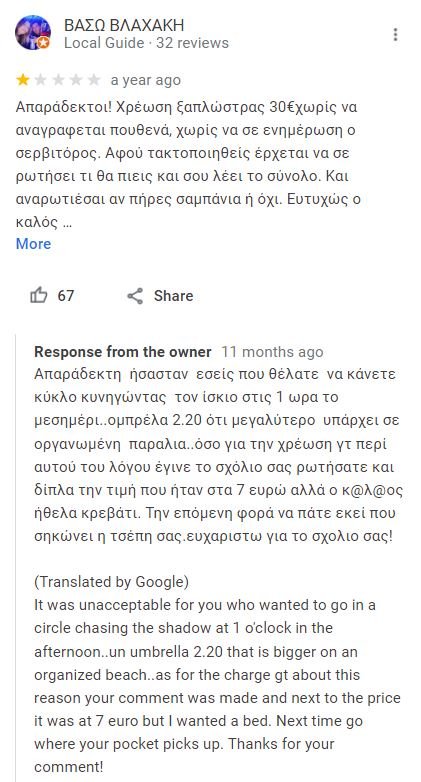 Αυτός ο ιδιοκτήτης Ελληνικού beach bar «ταπώνει» κάθε πελάτη που γράφει αρνητικά σχόλια στο Google Maps