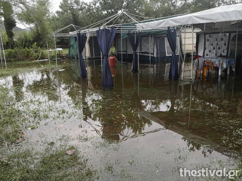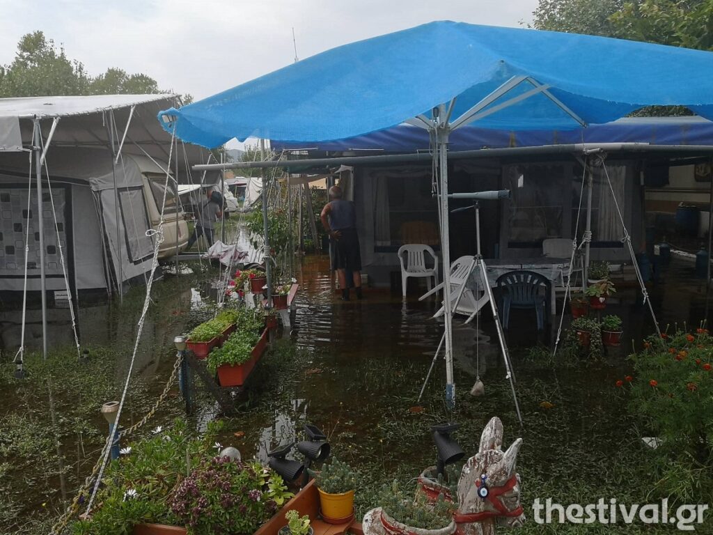 Ένα camping στη Συκιά Χαλκιδικής κοντά στην παραλία πλημμύρισε με το νερό να φτάνει τους 30 πόντους.