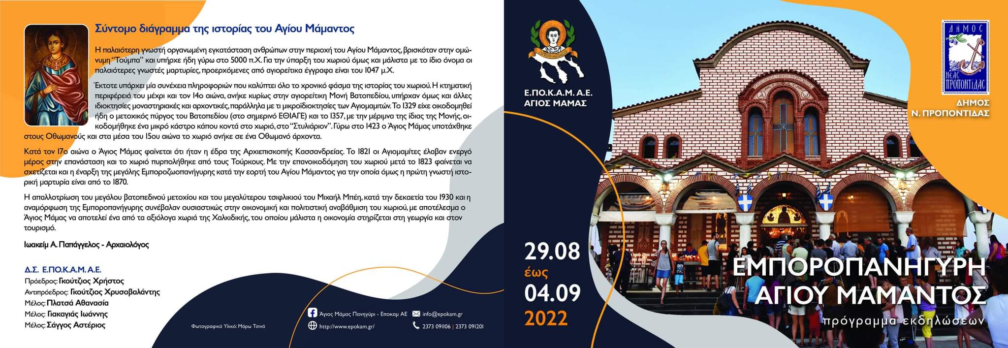 19:00 Περιφορά εικόνας Αγίου Μάμαντος και Μέγας Πανηγυρικός Εσπερινός στο χώρο της εμποροπανήγυρης.
