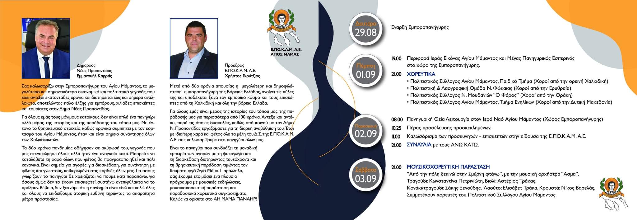 Συμμετέχουν χορευτές του Πολιτιστικού Συλλόγου Αγίου Μάμαντος.