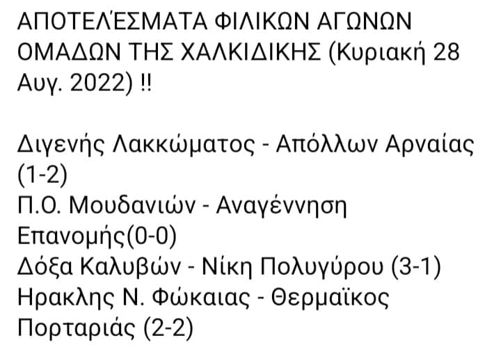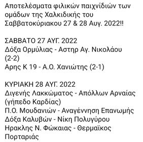 Το Σάββατο 27 και την Κυριακή 28 Αυγούστου 2022 πραγματοποιήθηκαν φιλικοί αγώνες ανάμεσα σε ομάδες της Χαλκιδικής.