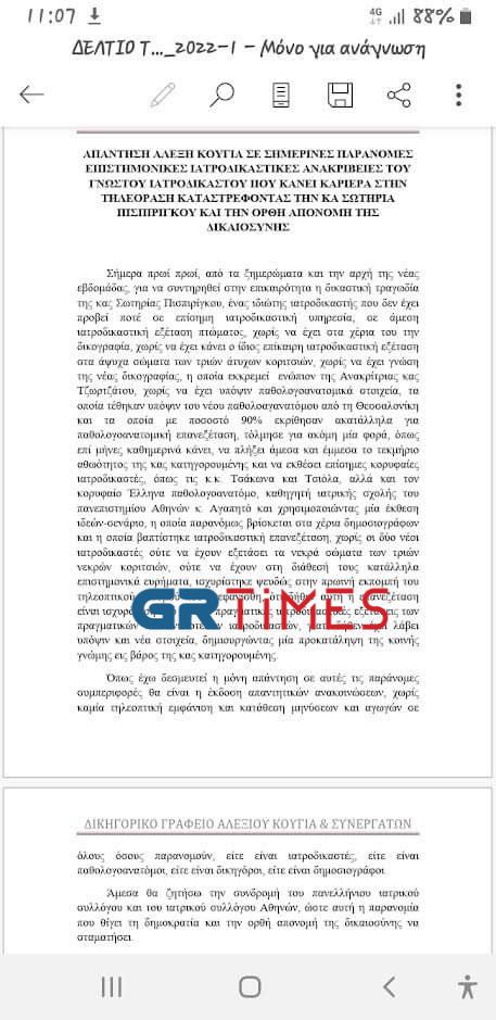 Άμεσα θα ζητήσω την συνδρομή του πανελλήνιου ιατρικού συλλόγου και του ιατρικού συλλόγου Αθηνών, ώστε αυτή η παρανομία που θίγει τη δημοκρατία και την ορθή απονομή της δικαιοσύνης να σταματήσει.