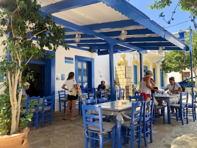 Στους Λειψούς το ζεύγος επέστρεψε το ‘88, «για να βαφτίσω την κόρη», εξηγεί η κυρία Παντέλλου. Παραδόξως, ενώ δεν ήταν στα σχέδιά τους, «κόλλησε» στο νησί. «Δυσκολεύτηκα στην αρχή γιατί είχα μάθει άλλη ζωή», παραδέχεται η γυναίκα. Η σημερινή ταβέρνα ήταν παλαιότερα «καφενειάκι», όπως το αποκαλεί, που ανήκε σε συγγενείς της. Όταν γύρισε στους Λειψούς αποφάσισε να το αναλάβει και να το τρέξει, καθώς στο Βέλγιο είχε ήδη δοκιμαστεί με επιτυχία στον κλάδο της εστίασης, σερβίροντας πάντα ελληνική κουζίνα. «Το πάλεψα. Και προτίμησα να το κάνω οβελιστήριο. Είμαι εδώ ακόμα γιατί προτιμώ να δουλεύω κάθε μέρα, παρά να κάθομαι σπίτι μου και να πίνω καφέ. Δεν μπορώ να μένω σπίτι», προσθέτει, ενώ απαντά σβέλτα και σε έναν Ιταλό πελάτη στα ιταλικά. «Μιλάω φαρσί ιταλικά και γαλλικά, φαρσί πλέον και τα ελληνικά, μέτρια τα αγγλικά», απαντά στην απορία που είδε στο πρόσωπό μου.