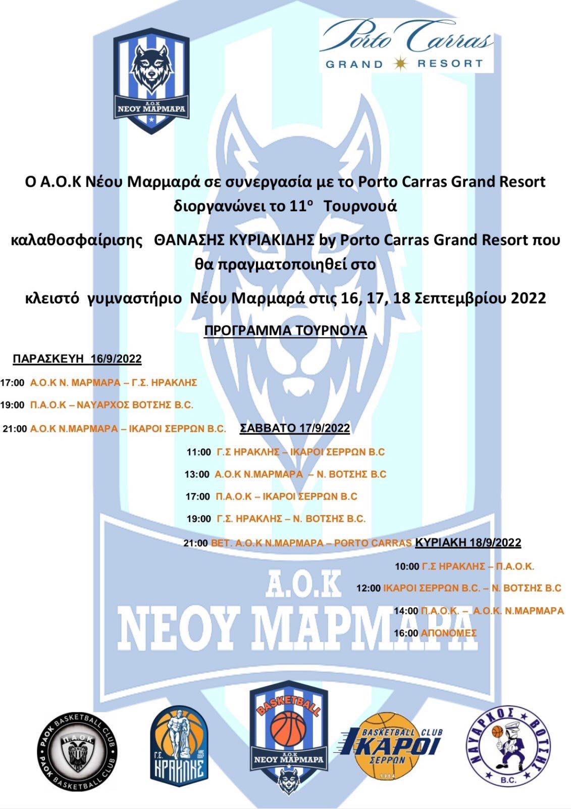 Α.Ο.Κ.Ν Μαρμαρά, Γ.Σ. Ηρακλή, ΠΑΟΚ, Ναύαρχος Βότσης και Ίκαροι Σερρών, θα δώσουν το παρών σε ένα τουρνουά γιορτή για την ελληνική καλαθοσφαίριση.