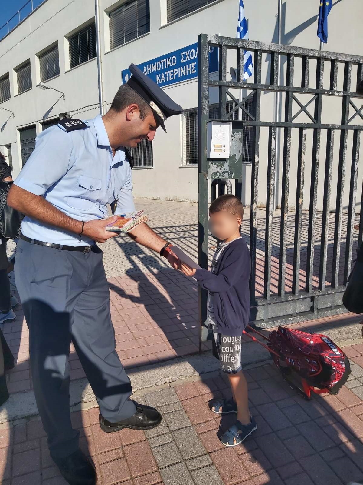 Με αφορμή την έναρξη της νέας σχολικής περιόδου, σήμερα (12 Σεπτεμβρίου 2022) το πρωί αστυνομικοί μοίρασαν σε μαθητές των σχολείων της Κεντρικής Μακεδονίας, φυλλάδια και σελιδοδείκτες με χρήσιμες συμβουλές για την οδική ασφάλεια.