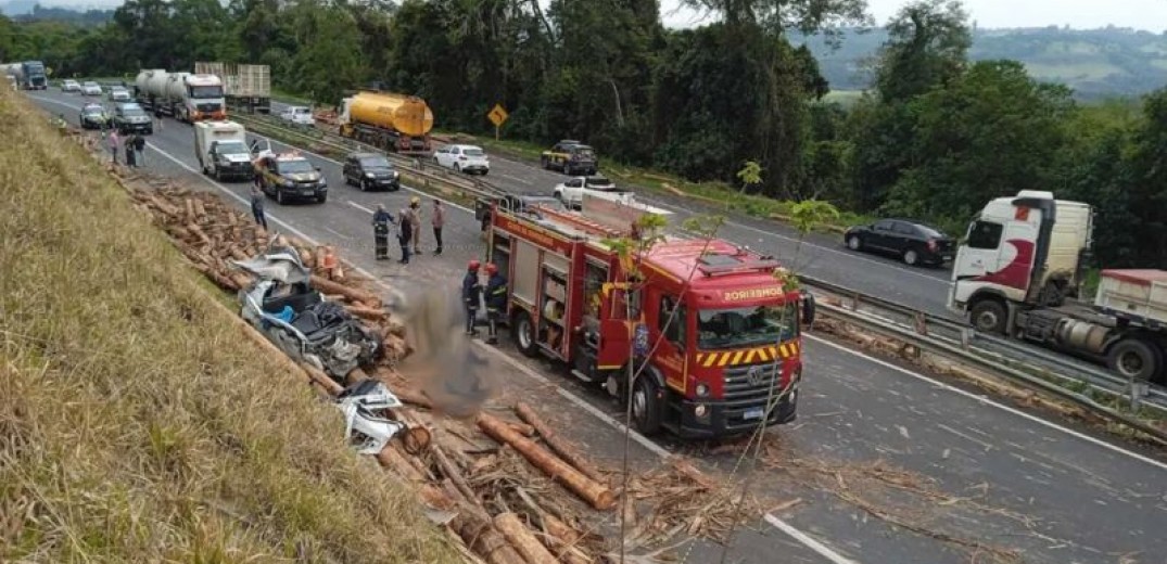 Τέσσερις άνθρωποι βρήκαν τον θάνατο και άλλος ένας τραυματίστηκε όταν κορμοί δέντρων έπεσαν από νταλίκα και συνέθλιψαν αυτοκίνητο στην πολιτεία Παρανά της νότιας Βραζιλίας.