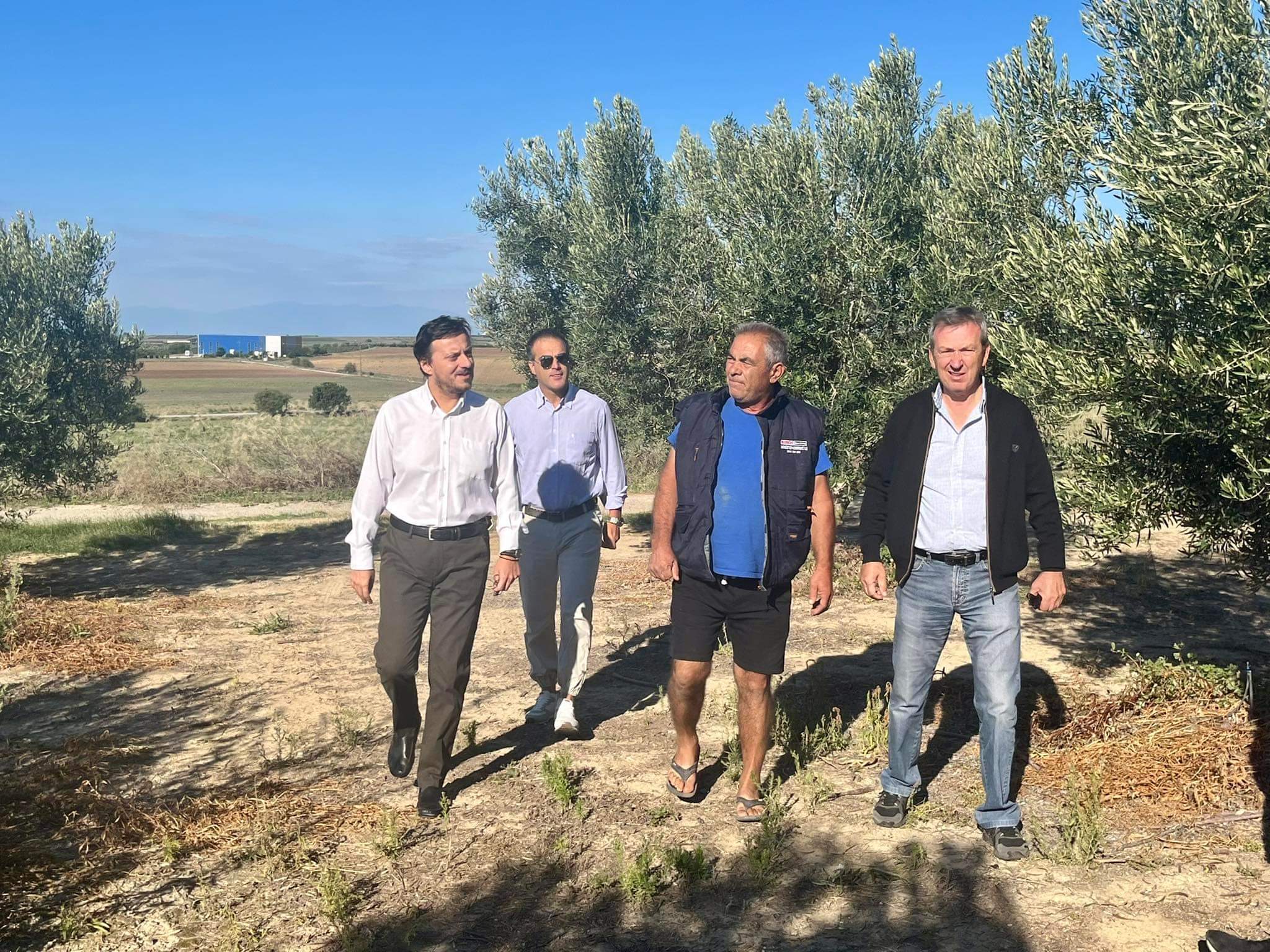 Αρχικά, τα μέλη της Νομαρχιακής Επιτροπής μαζί με τον κ. Πάνα επισκέφτηκαν παραγωγούς πράσινης ελιάς Χαλκιδικής στα κτήματά τους και συζήτησαν τα ζητήματα του αυξημένου κόστους παραγωγής καθώς και το μέγα ζήτημα της απουσίας εργατών γης.