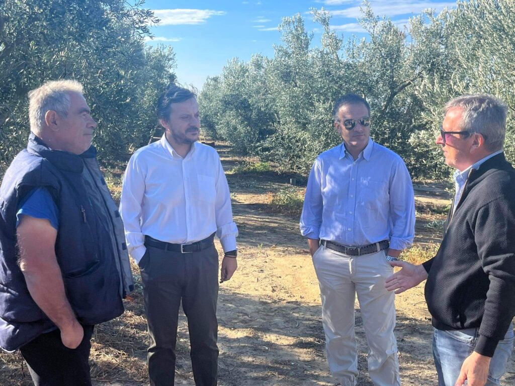 Αρχικά, τα μέλη της Νομαρχιακής Επιτροπής μαζί με τον κ. Πάνα επισκέφτηκαν παραγωγούς πράσινης ελιάς Χαλκιδικής στα κτήματά τους και συζήτησαν τα ζητήματα του αυξημένου κόστους παραγωγής καθώς και το μέγα ζήτημα της απουσίας εργατών γης.