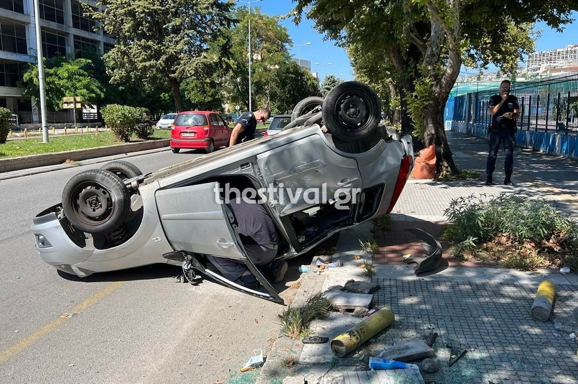 Θεσσαλονίκη: Σοβαρό τροχαίο και ανατροπή Ι.Χ. – Μία τραυματίας (φώτο)