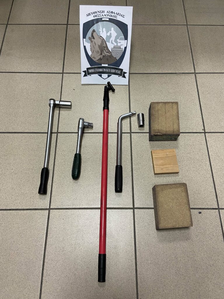 Επιπλέον, κατασχέθηκε Ι.Χ.Ε. αυτοκίνητο ιδιοκτησίας της συζύγου του συλληφθέντα, που χρησιμοποιούσαν για την μετάβαση στα σημεία τέλεσης των κλοπών, στο εσωτερικό του οποίου βρέθηκαν και κατασχέθηκαν τρία ζαντολάστιχα που είχαν αφαιρέσει νωρίτερα και αποδόθηκαν στον ιδιοκτήτη τους, καθώς και διάφορα εργαλεία που χρησιμοποιούσαν για την πραγματοποίηση των έκνομων ενεργειών τους.