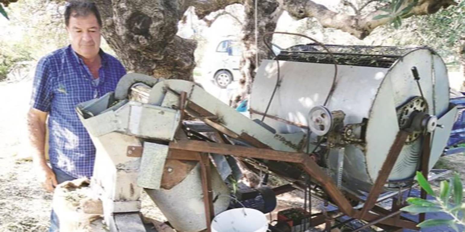 «Έκανα μια σκέψη κάποια μέρα, να φτιάξω ένα μηχάνημα που να “ξεφυλλίζει” τις ραβδισμένες ελιές και να τις ξεχωρίζει από τα φύλλα, ώστε να μπαίνουν καθαρές μέσα στα τσουβάλια πριν τα μεταφέρω στο ελαιουργείο. Έτσι δε χάνω καμία ελιά και γλιτώνω τα εργατικά χέρια που απαιτούνται για να κοσκινίσω τις ελιές στην κλασική κοσκινίστρα.