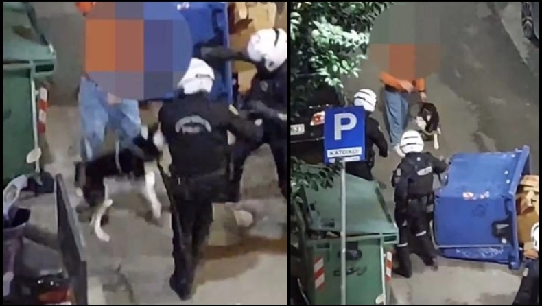 Ο σκύλος του λειτουργεί σαν ασπίδα, καθώς την ώρα που οι αστυνομικοί προσπαθούν να επιτεθούν στον ιδιοκτήτη του, το ζώο πάει να τους «αρπάξει».