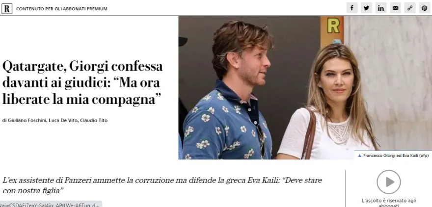Υπενθυμίζεται ότι ο Φραντσέσκο Τζιόρτζι, η Εύα Καϊλή, ο Αντόνιο Παντζέρι και ένα τέταρτο άτομο κατηγορούνται για διαφθορά, ξέπλυμα χρήματος και σύσταση εγκληματικής οργάνωσης.