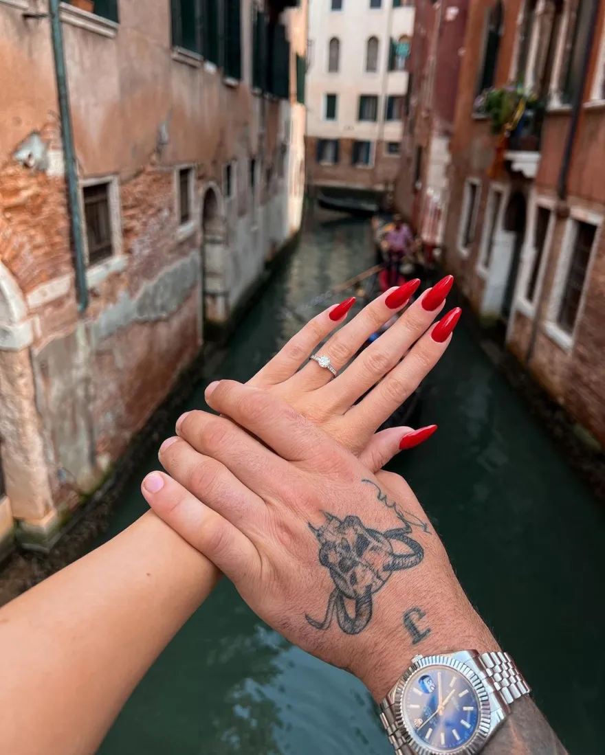 Η instagrammer είχε ανεβάσει μία φωτογραφία στα social media, όπου δείχνει το μονόπετρο δαχτυλίδι στο χέρι της, ενώ την κρατά ο σύντροφος και πατέρας του παιδιού της. Το ζευγάρι ταξίδεψε στην Βενετία, όπου και έγινε η πρόταση γάμου. Στη λεζάντα της ανάρτησης, έγραψε με κεφαλαία γράμματα: «ΝΑΙ» και πιο κάτω «Συγγνώμη είμαι δεσμευμένη», προσθέτοντας εικονίδια μίας καρδιάς και ένα δαχτυλίδι.