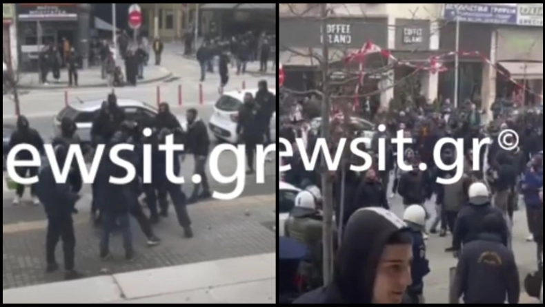 Ξύλο μεταξύ κουκουλοφόρων έξω από τα δικαστήρια Θεσσαλονίκης την ώρα της δίκης για την δολοφονία του Άλκη Καμπανού.