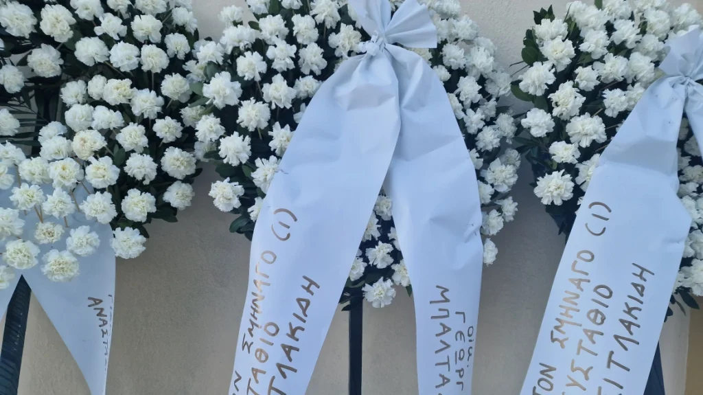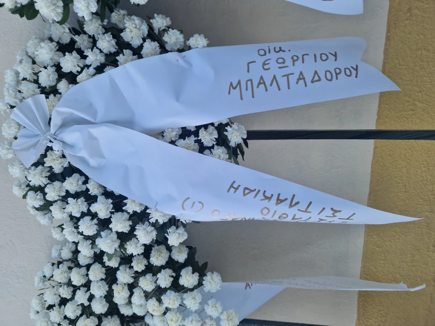Η εκκλησία που θα γίνει η κηδεία του 31χρονου πιλότου έχει γεμίσει από νωρίς το πρωί με στεφάνια. Ένα από αυτά που ξεχωρίζουν είναι εκείνος της οικογένειας του Γιώργου Μπαλταδώρου, πιλότου του μοιραίου Mirage 2000-5, που βρήκε τραγικό θάνατο μετά την συντριβή του αεροσκάφους το 2018.