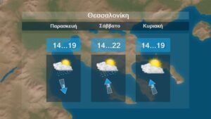 Στη Θεσσαλονίκη προβλέπονται τοπικές νεφώσεις με αστάθεια έως το Σάββατο. Η θερμοκρασία θα έχει μέγιστες τιμές περί τους 19 με 22 βαθμούς Κελσίου.