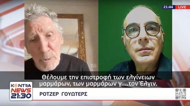 Το εμβληματικό πρώην μέλος των Pink Floyd, που μίλησε την Τετάρτη το βράδυ στο κεντρικό δελτίο του Kontra και τον Πάνο Χαρίτο, επέμεινε πως οι Άγγλοι έκλεψαν τα Γλυπτά και «προφανώς πρέπει να επιστρέψουν στην Ελλάδα».