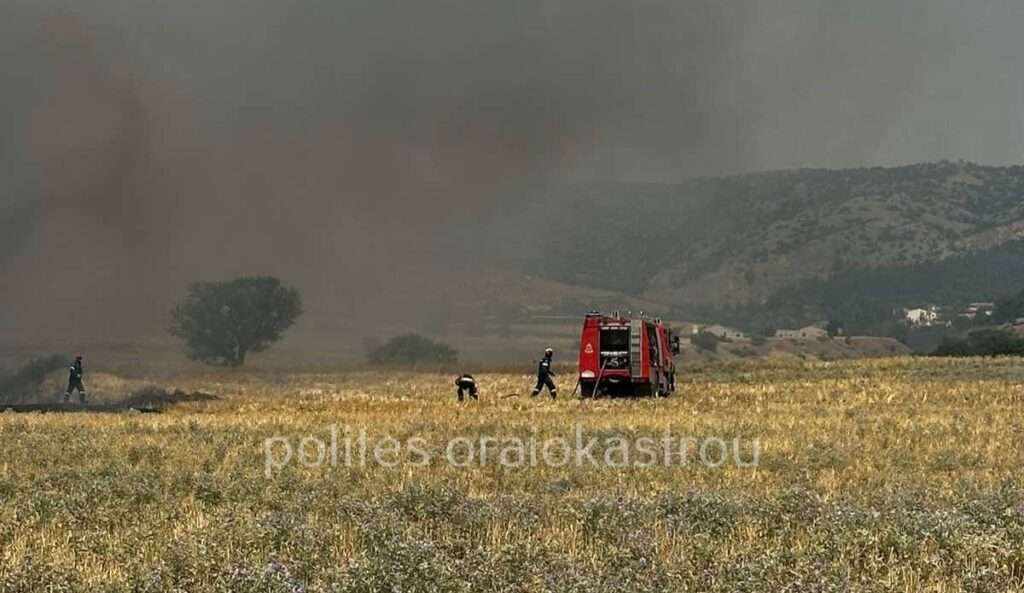Η φωτιά καίει χορτολιβαδική έκταση, ενώ στο σημείο σπεύδουν δυνάμεις της Πυροσβεστικής.